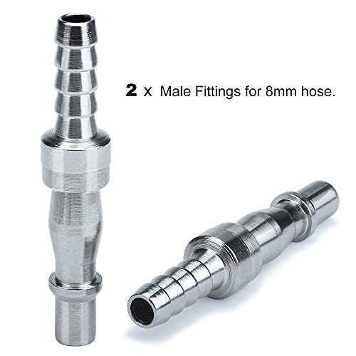 Include: viene fornito con 1 filettatura maschio femmina e 1 filettatura femmina femmina e 2 raccordi maschio maschio e 2 raccordi maschio femmina filettatura, 6 raccordi maschio per tubi da 6, 8 e 10 mm