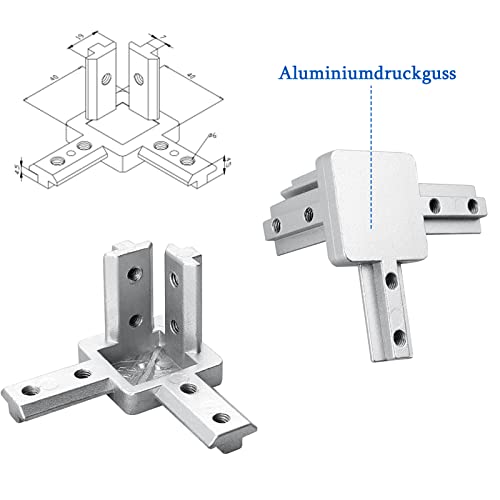 Raccordo angolare a 4 vie in alluminio a 3 vie, con viti, supporto angolare, scanalatura 6/8, per profilo di estrusione in alluminio, argento 2020/3030/4040 (40 x 40 scanalatura 8 M6)