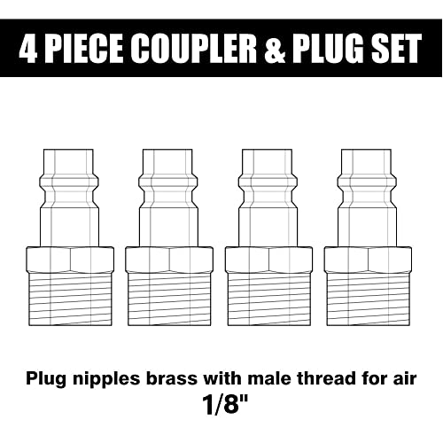 ★ FUNZIONE: i giunti a sgancio rapido caricati a molla per l'uso sul lato del compressore hanno una valvola incorporata per spegnere l'aria quando si cambia tra gli strumenti. Superficie zincata per resistenza alla ruggine e alla corrosione