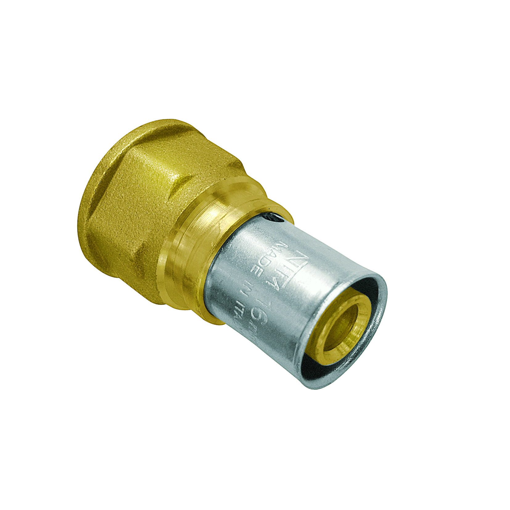 In ottone nichelato, utilizzabile con pressatrice con profilo di pressatura TH, U