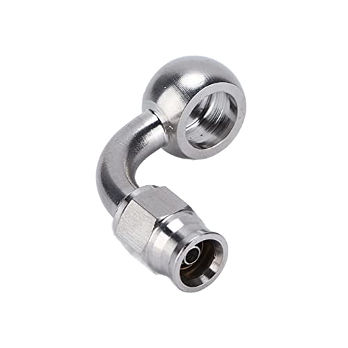 Raccordo per Tubo Flessibile Banjo, AN‑3 Raccordo per Tubo Freno a Occhiello Banjo Adattatore a 90° in Acciaio Inossidabile Accessori per Automobili