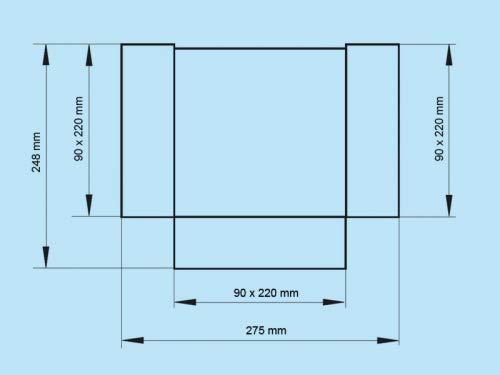 Raccordo a T, 90°, raccordo orizzontale, piatto, sistema di ventilazione, 150 (90 x 220)