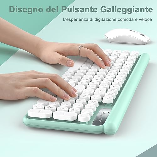 【Set tastiera e mouse ciano】 L'ultimo design estetico colorato del 2024 di tastiera e mouse wireless, mouse e tastiera wireless ciano rende il tuo desktop unico ed elegante. La tastiera wireless RaceGT adotta un classico copritastiera staccabile in stile macchina da scrivere, che ti offre un tocco confortevole durante la digitazione.