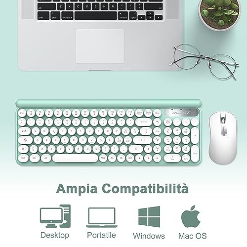 【Potente configurazione funzionale】 La tastiera wireless conserva il tastierino numerico e i tasti della tastiera full-size a 102 tasti e il layout italiano QWERTY standard consente di accedere rapidamente a musica/controllo del volume/messaggi, ecc.