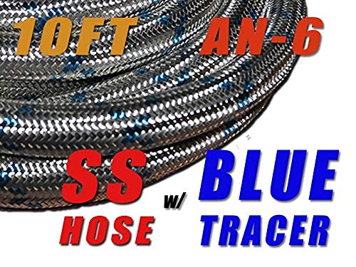 TT Racing AN6 (5/16) 8,3 mm in acciaio inox blu Tracer intrecciato carburante gas E85 tubo olio linea 10FT BLSSAN6_010