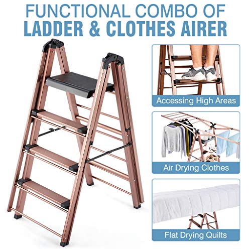 Rackaphile Stendibiancheria Pieghevole, 2 in 1 Stendibiancheria Multifunzionale per Interni/Esterni, Stenditoio per Biancheria in Alluminio e Scala a pioli, Bronzo