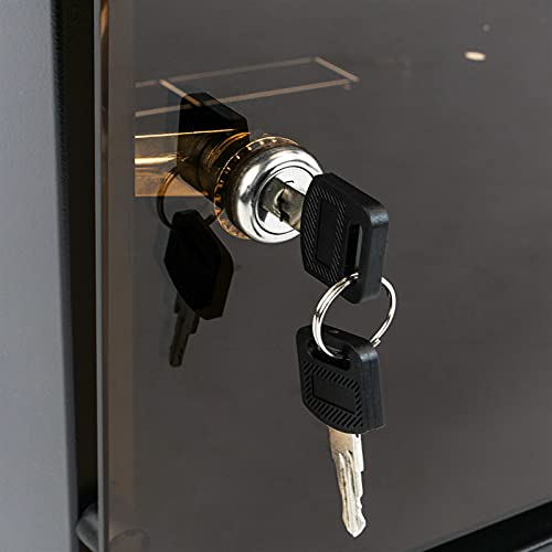 Porta con vetro di sicurezza che le conferisce un design più accattivante e serratura con chiave. Apertura della porta a 180 gradi.