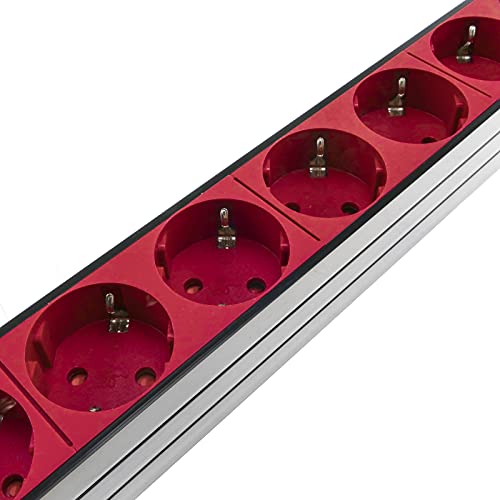 RackMatic - Multipresa Ciabatta elettrica Rosse per armadi Rack 19" 1U con 8 Prese schuko permanenti