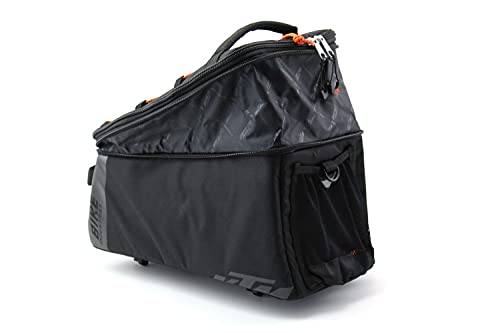 Borsa da bicicletta versatile: La borsa da bicicletta KTM - Sport Trunk Bag Small - è una borsa multifunzionale che può essere montata sul portapacchi per bicicletta Racktime con adattatore Snapit integrato. La borsa dispone di un ampio scomparto principale con possibilità di espansione e 3 scomparti interni aggiuntivi per riporre tutti i tuoi oggetti essenziali in modo sicuro.