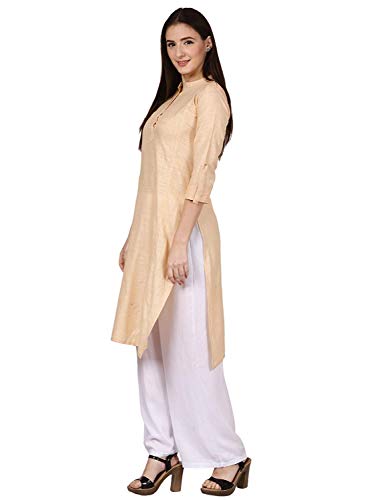 RADANYA Canotta Lunga in Cotone Kurti con Bottoni in Tinta Unita Manica Lunga 3/4 Beige Kurta