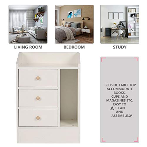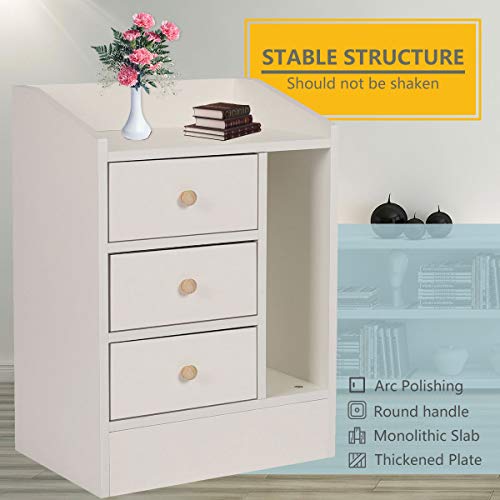 Radelldar Comodini Camera da Letto Moderni Comodino con 3 Cassetto,43 x 30 x 60 cm, Bianco