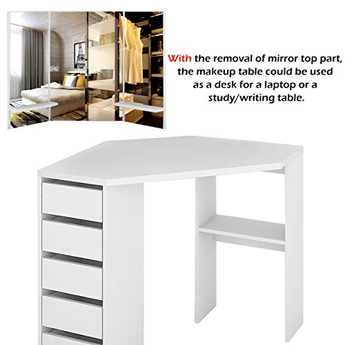 Tavolo da Trucco Angolare:Toeletta Trucco Il design a 5 cassetti e 3 ripiani offre spazio sufficiente per riporre orecchini, collane, gioielli. Può anche organizzare libri, riviste, DVD e così via.