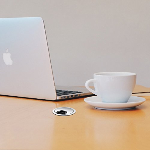 La superficie della piastra di copertura si inserisce nel manicotto esterno mantenendo l'intero cavo del computer o dell'apparecchio ordinato per dare un aspetto pulito piuttosto che appenderlo sopra il bordo.