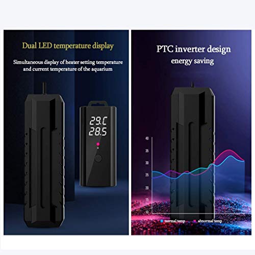 Controller display Dual Dual LED esterno: il regolatore della temperatura esterno controlla la temperatura senza bagnare le mani. È facile impostare la temperatura di 68 ° C / 20 ° C a 93 ° C / 34 ° C. Controlla il grafico delle dimensioni per trovare il riscaldamento dell'acquario desiderato.