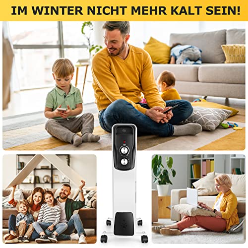 Riscaldatore a olio portatile e pratico: il riscaldatore è dotato di un cavo di alimentazione per la conservazione per un facile utilizzo e stoccaggio. Quattro ruote universali e maniglie integrate rendono facile spostare il tuo riscaldatore elettrico da una stanza all'altra