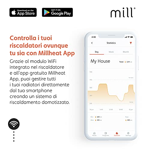 Mill radiatore al olio Norvegese Mill Gentle AIR OIL1500WIFI3, 1500W, riscalda ambienti fino a 31mq. Con WIFI integrato e 3 livelli di potenza e tecnologia Millheat boost