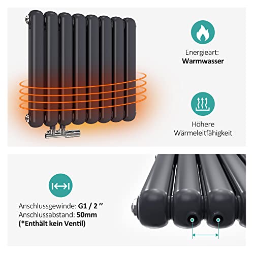 EMKE Radiatore orizzontale ovale, 550 x 440 mm, colore antracite, design radiatore a doppio strato, piccolo riscaldamento laterale per acqua calda