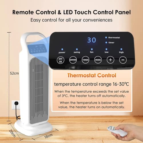 ∮️ 【Telecomando e 3 modalità: questo riscaldatore è dotato di un telecomando con risposta sensibile, supporta 3 modalità: alta calda (2000 W), basso calore (1000 W), solo ventilatore. Anche il display a LED e il controllo touch sono opzionali per la tua scelta, puoi facilmente controllare il riscaldamento per mantenere una temperatura costante e confortevole.