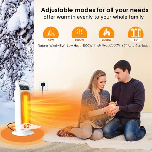 Radiatore soffiante in ceramica 2000W, riscaldamento elettrico con telecomando, termostato, 9H timer e prenotazione, 3 modalità, oscillazione 60° per soggiorno, camera