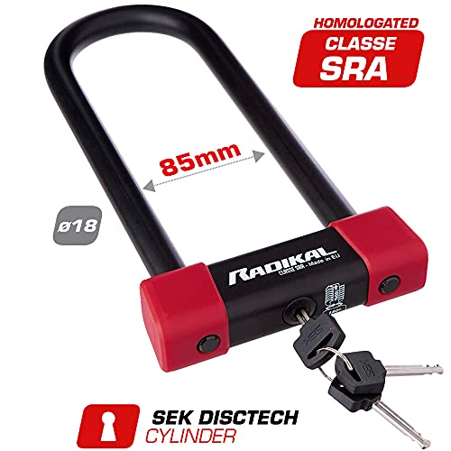 Classe SRA approvata richiesta dalle compagnie di assicurazione in Francia. Grillo a U da 18 mm, testato anti-segatura, tagliabulloni, mazzuolo ... Consigliato per tenere motociclette di fascia alta in luoghi ad alto rischio di furto.