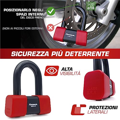 Radikal RK48100 Lucchetto Antifurto Moto Catena ø13.5 e Mini U ø18 Sicurezza Premium Omologata SRA, 100 cm
