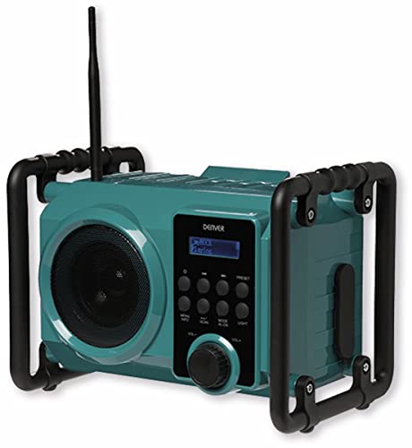 Radio da cantiere DENVER WRD-50. Sintonizzatore radio digitale DAB + e FM. Connessione Bluetooth, USB e ingresso AUX. Molto robusto. Uscita del volume: 5 W. Batteria ricaricabile o rette elettrica.