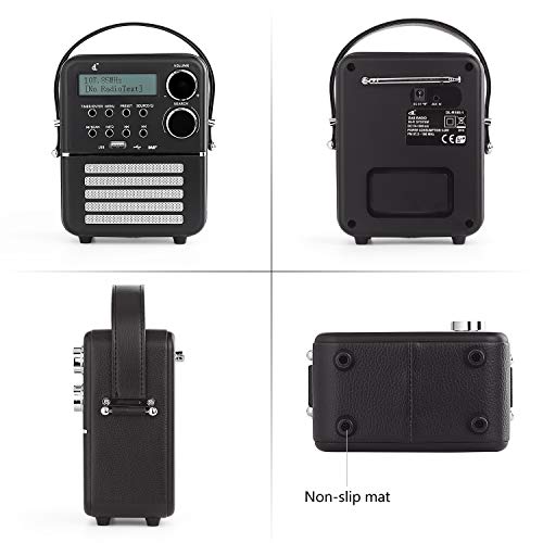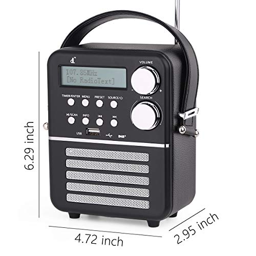 Mini dl Radio Digitale DAB e FM, Bluetooth e USB Play, Funzione Timer e set Sveglia con Batteria Ricaricabile (6.3/4.7/2.9inch) (DLR1051-BLK)