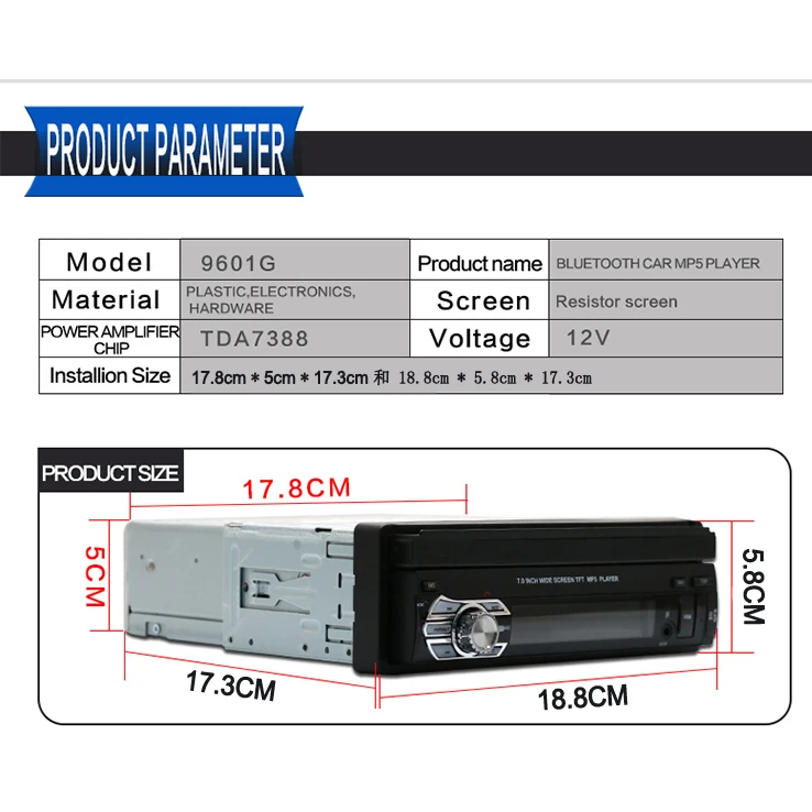 Car Radio 7"HD MP5 Player GPS Autoradio 2Din 9601G Touch Screen Video Multimedia Bluetooth/FM/MP5/USB/AUX Rearview Camera Stereo