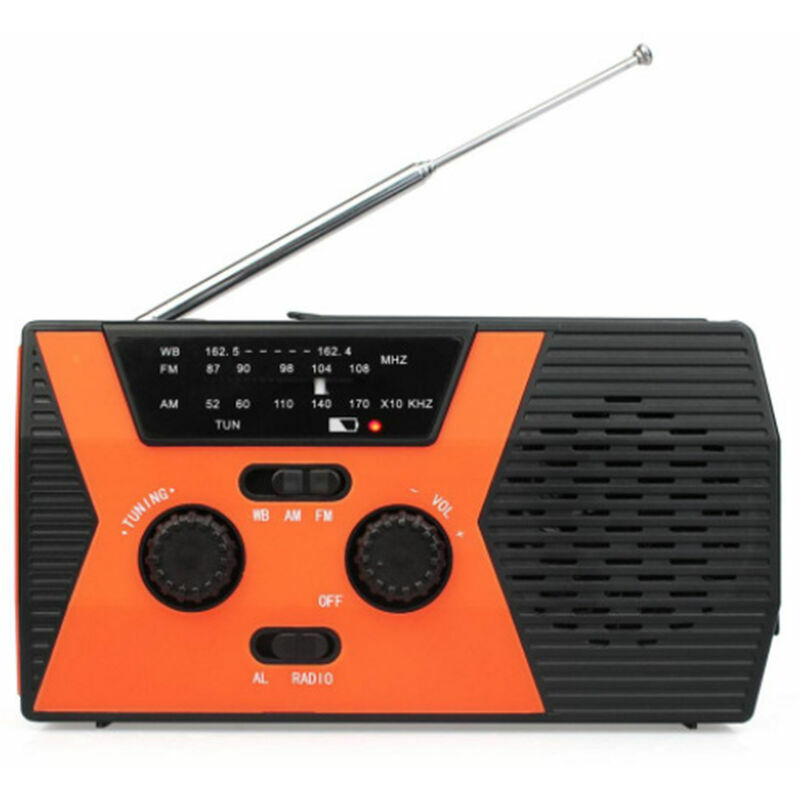 Panoramica: La radio riceve le bande AM, FM e NOAA in modo da poter ascoltare radio, meteo e notizie a casa o ovunque. Con l'uscita di alimentazione USB, può essere utilizzato come fonte di alimentazione di backup per alimentare dispositivi intelligenti. 4 modalità di alimentazione, incluse batterie AAA alimentate, generazione di energia a manovella, ricarica solare e ingresso di alimentazione CC 5V. Questa radio portatile è progettata per funzionare come radio di emergenza con allarme SOS e torcia a LED. Con il volume rotante e le manopole di sintonizzazione, i pulsanti di commutazione AM/FM/NOAA, è facile e comodo da usare. Specifiche: Articolo: Radio di emergenza AM: 520-1710 kHz FM: 87,5-108 MHz Tensione della batteria: 4,7 - 5,25 V Metodo di ricarica: ricarica solare/generazione di energia manuale/batteria AAA (NON inclusa)/ricarica CC 5 V Capacità della batteria integrata: 3,7 V 2000 mAh Tempo di ricarica USB: 3-4 ore Tempo di ricarica a manovella: 7 ore < br/>Tempo di ricarica