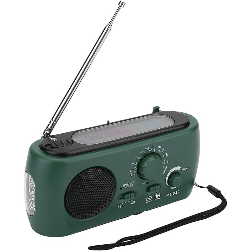 RADIO AM/FM - - Ruota la manopola dell'interruttore della radio e seleziona la radio AM/FM per regolare il volume. Radio FM/AM con altoparlante integrato di alta qualità per l'intrattenimento. 【TORCIA LED】 - La radio ha dimensioni compatte con una cinghia appesa, leggera e facile da trasportare. È progettato con 3 torce LED luminose, che offrono un raggio abbastanza ampio, garantisce la tua sicurezza quando cammini di notte. 【STRUMENTO DI AIUTO DI EMERGENZA】 - La radio può persino caricare il tuo telefono tramite l'uscita DC 5V, per un chiamata di emergenza quando il telefono è quasi esaurito 【RICARICA IN MOLTEPLICI MODI】 - Solitamente ricaricata dal pannello solare o da una manciata di avvio, risparmio energetico e protezione ambientale. Può anche essere alimentato da 3 batterie AAA (non incluse) o caricato collegando un cavo micro USB.