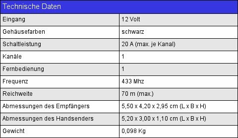 Radiocomando 1 canale Potenza di commutazione 12 V 12 A Portata 70 m circa