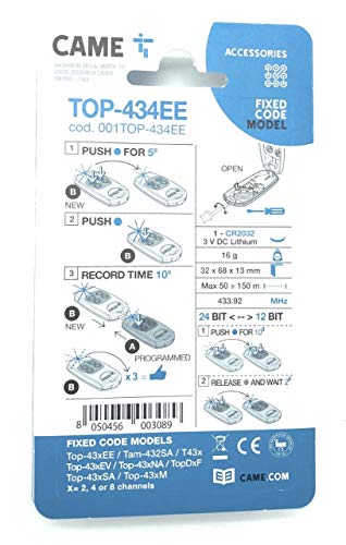 Telecomando per automazione cancelli originale CAME Modello 4 canali Frequenza di utilizzo 433,92 Mhz
