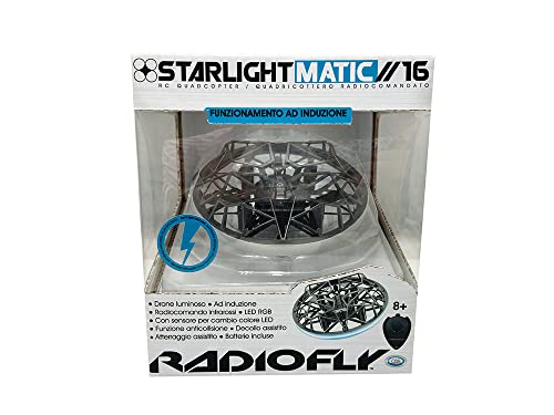 ODS TOYS Radiofly Starlight Matic - Drone Giocattolo a Induzione. Con Infrarossi, Sensore Anticollisione, Luci Led 360° con Cambio Colore, Decollo e Atterraggio Assistito., Nero, 40105