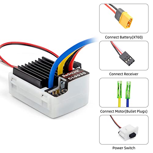 LOW SELF-HEATING si adatta al corpo del bagagliaio chiuso. LINEAR SMOOTH CONTROL sia in avanti che all'indietro è perfetto per cingoli RC, auto alla deriva e monster truck.