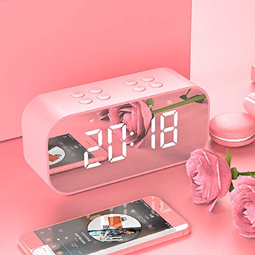 Radiosveglia Digitale con Doppio Allarme Digitale Orologio Digitale FM/AM, Sveglia da Comodino con Display a LED da con Snooze/Dimmer Specchio Orologio da Scrivania Microfono Incorporato(rosa)