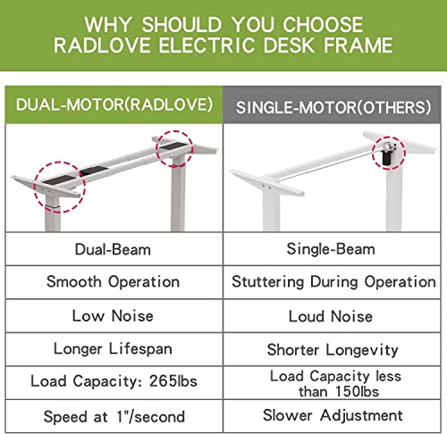 Radlove Telaio da scrivania regolabile in altezza a doppio motore, telaio da tavolo regolabile, gambe per tavolo da 120 a 178 cm, con 4 controlli in memoria, portata 120 kg (bianco)