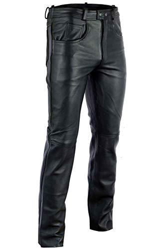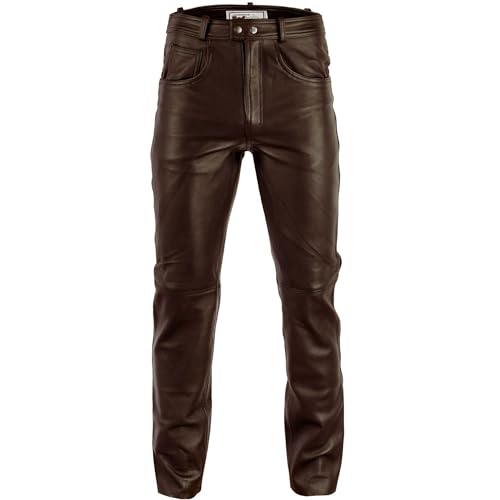 Radmasters Pantaloni da uomo in pelle jeans pantaloni in vera pelle nero e marrone, Nero, XL