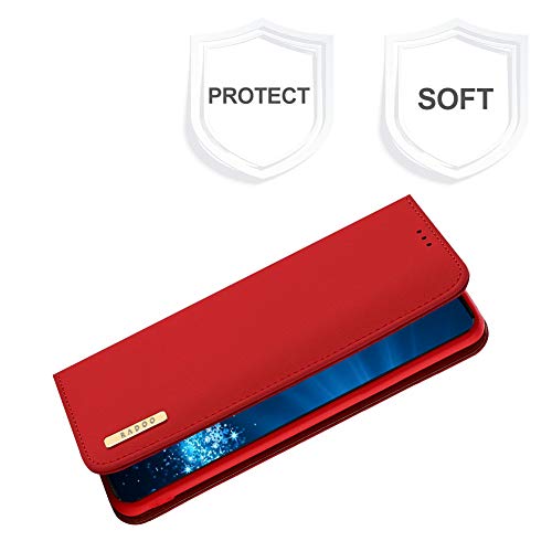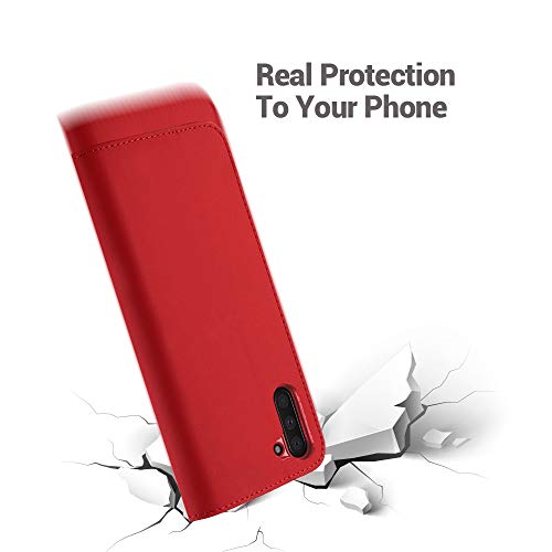 Radoo Cover Galaxy Note 10, Custodia Portafoglio in Vera Pelle Ultra Slim Body Protettiva con Carta Fessura & TPU Antiurto Flip Cover a Libro per Samsung Galaxy Note 10 (Rosso)