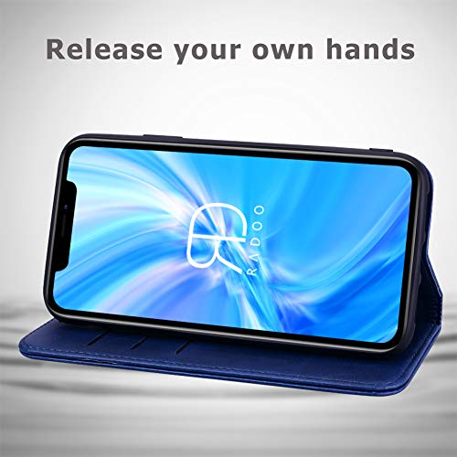 Radoo Cover iPhone XS Max, Flip Custodia Case Vintage PU Pelle Portafoglio [Kickstand][Slot per Schede] con TPU Antiurto Cover a Libro per Apple iPhone XS Max 6,5" (Blu)