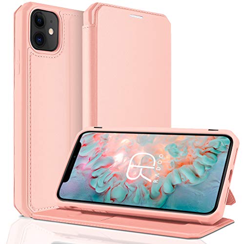 Radoo Cover per iPhone 11, PU Leather Custodia con Interna Antiurto in TPU [Visione Angolo Regolabile] [Magnetica] Flip Case in Pelle Custodia per iPhone 11 (6,1 Pollici) (Rosa)