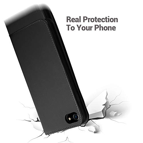 RADOO Cover per iPhone 8 in vera pelle, custodia a portafoglio per iPhone 7, custodia premium sottile in vera pelle con chiusura magnetica e scomparti per carte per Apple iPhone 8/iPhone 7 4.7" (nero)