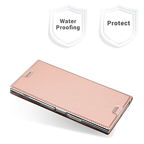 Radoo Cover Sony Xperia XZ Premium, Slim-Fit Folio Premium Custodia Vintage PU Pelle con [Kickstand] Tasca Stile Unico Sottile Funzione TPU Antiurto Flip Cover a Libro(Oro Rosa)
