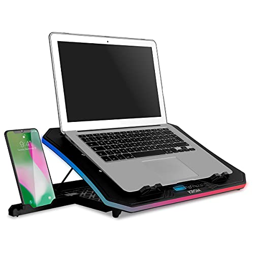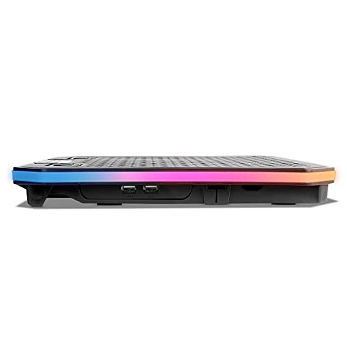 KROM Base di raffreddamento portatile - Base di raffreddamento per laptop fino a 19", 6 ventole, RGB, supporto per smartphone, display LCD e HUB USB, nero