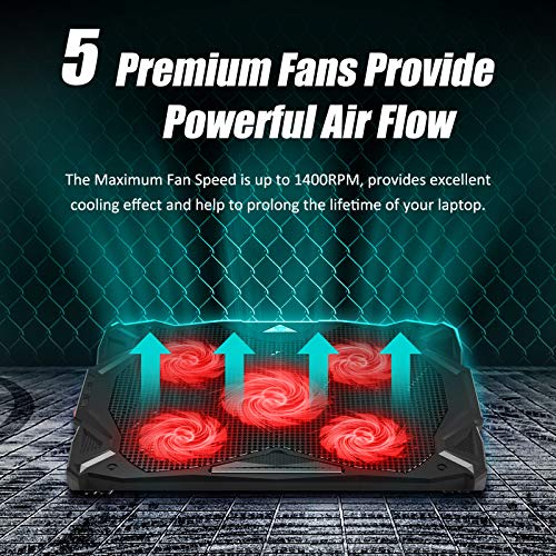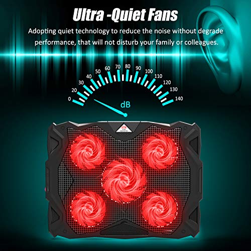 CP3 Base Raffreddamento pc Portatile, ventole pc Portatile, con Supporto di Raffreddamento Fino a 17,3 Pollici, con 5 Laptop Cooler per Videogiochi, Ufficio, Lavoro da casa (Rosso)