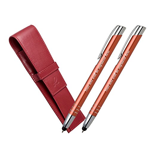 Raffreddare idee regalo di nozze - 2 x Arancione penne a sfera, più cassa della penna rossa in pelle (Blue & Black Ink)