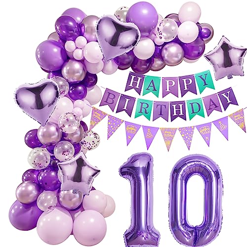 Ragazza 10 Anni Palloncini viola, Ghirlanda Palloncini 10 Anni Ragazza, Decorazioni 10 anni Compleanno viola, Palloncini Compleanno 10 Anni compleanno viola, Decorazioni 10 Anni compleanno ragazze