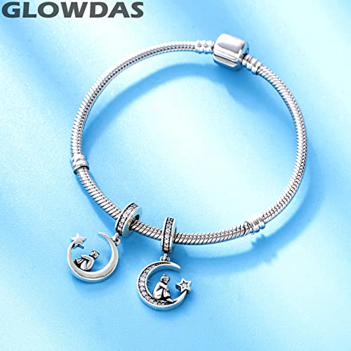 Ragazza seduta sulla luna crescente ciondolo charms, fit braccialetto Pandora, 925 argento sterling scintillante CZ luna e stella ciondolo cielo stellato perline, regali per bambina/festa della mamma