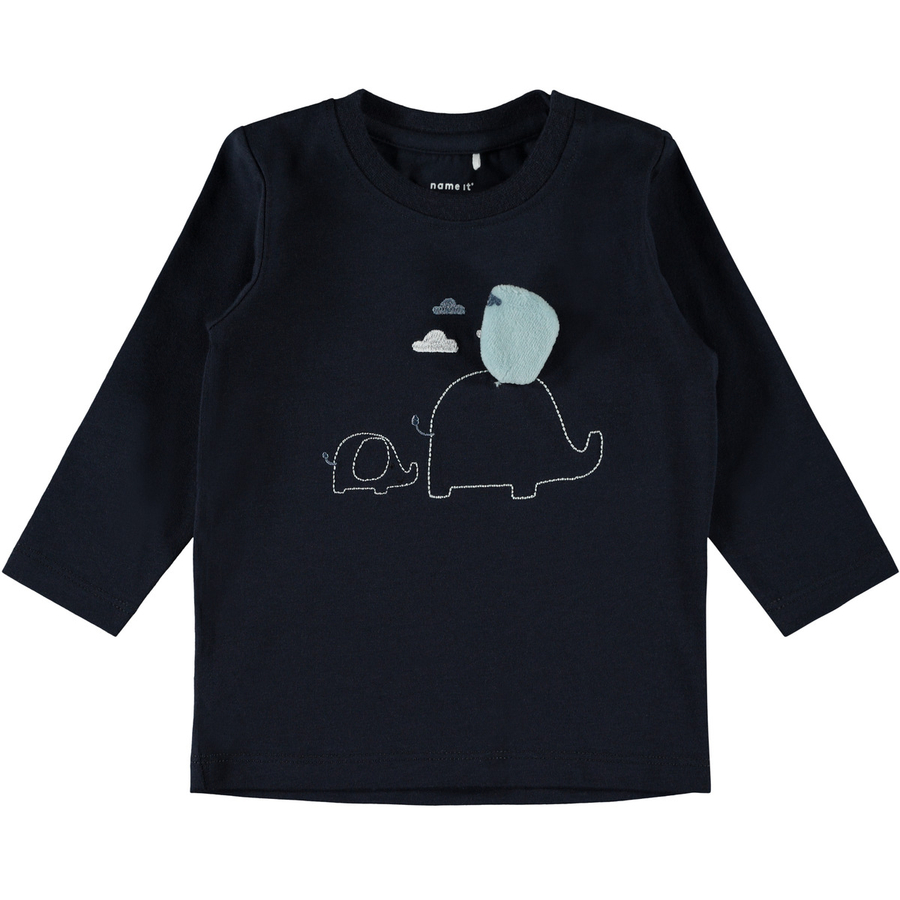 Bella camicia a maniche lunghe in morbido cotone con applicazione di elefante fresco sul davanti. L'orecchio turchese dell'elefante può essere ripiegato. dettagli del prodotto: Materiale: 95% cotone biologico, 5% elastan Lavabile fino a 40 °C
