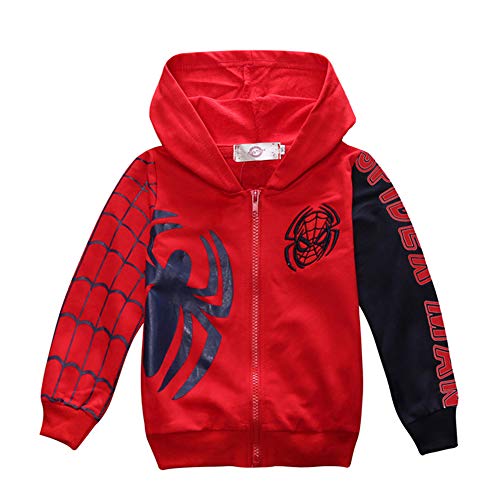 Ragazzi Felpa con Cappuccio Spiderman T-Shirt Unisex Camicie Bambino Hoodie Pullover Autunno T-Shirt Inverno Maniche Lunghe Maglietta Giacchino (D Red,120cm)