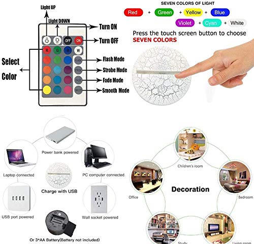 Controllo remoto e tocco intelligente: accendere/spegnere le luci notturne o cambiare le luci con un tocco intelligente sensibile o un telecomando. La fantastica lampada per la decorazione della casa con illusione visiva ottica rende la tua stanza più interessante.